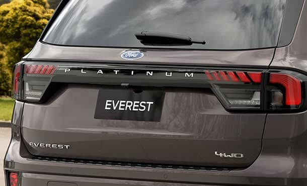 LED tail lamps set in a full-width design emphasise Everest's increased track. The extra 50mm plants the vehicle on its wheels creating a strong and muscular stance.