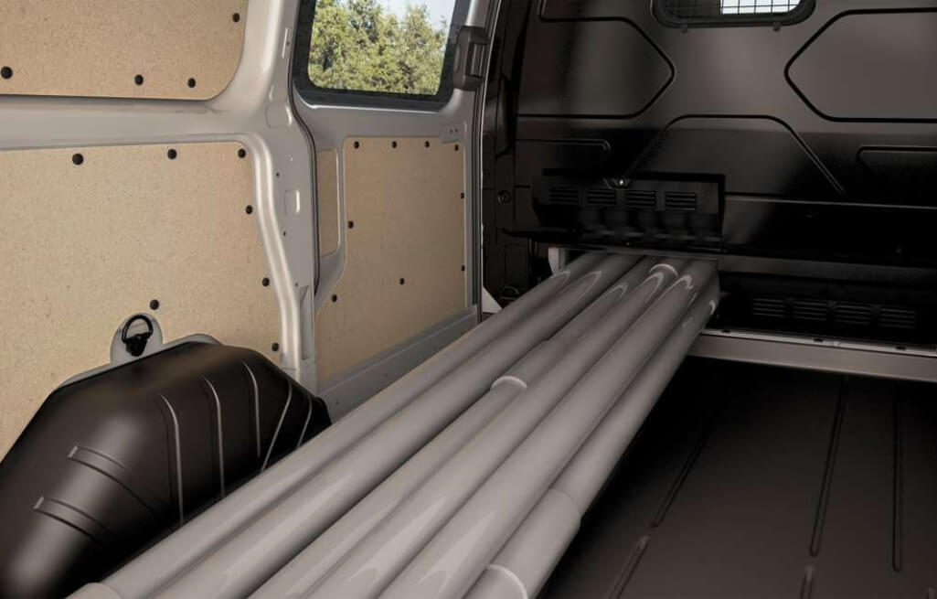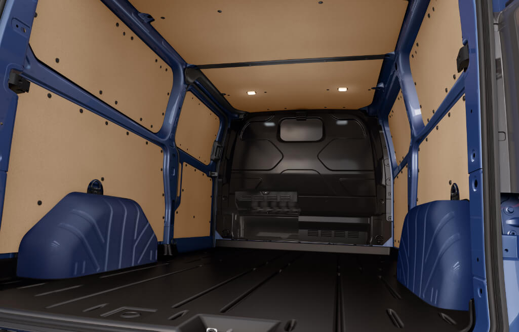 It's larger on the inside than it looks on the outside. Short wheelbase (4972 mm) models can carry items up to 3 metres long or three pallets, while long-wheelbase (5339 mm) models have even more space.